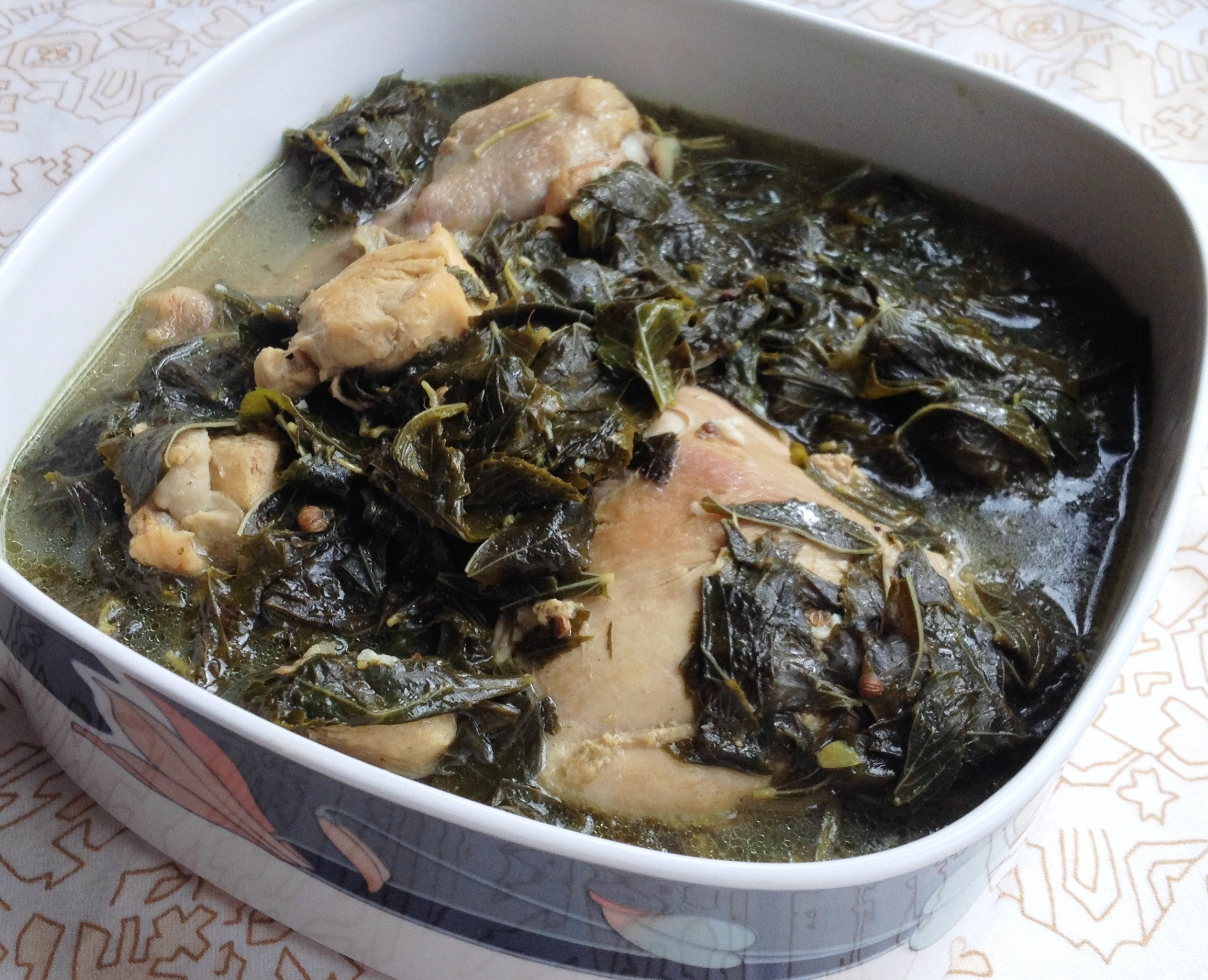 - Mouloukhiya preparado con malva, una verdura de hojas verdes muy popular en Oriente Medio. Se trata de un guiso de textura parecida a la sopa, que normalmente se hace con pollo o conejo y se condimenta con cilantro y mucho ajo. Se sirve con arroz.